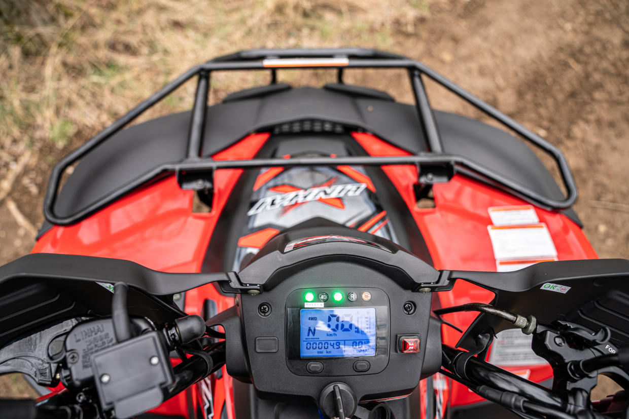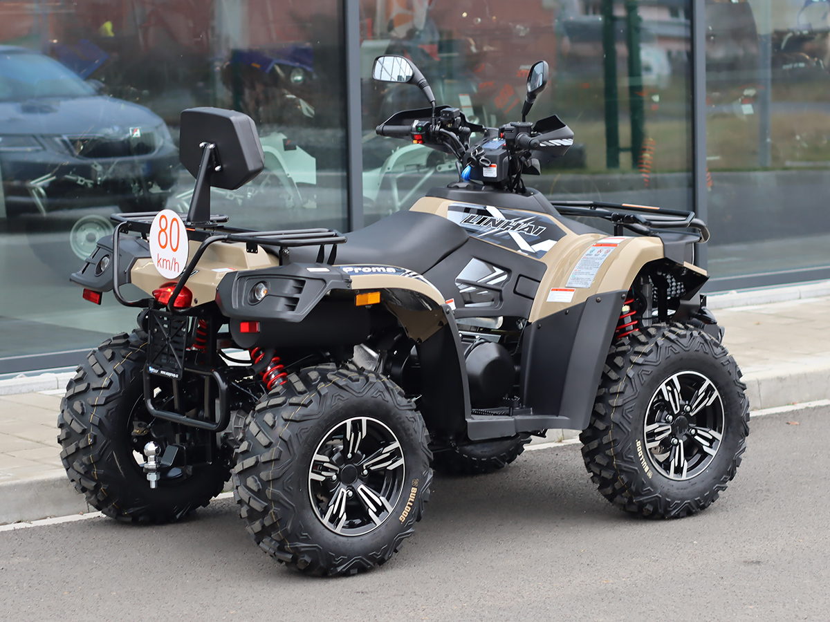 Electrically selectable 2×4 / 4×4 drive w/ electric locking differential, front and rear bumpers, steel front and rear racks, alloy wheels, 3000lbs electric winch w/ remote control, trailer hitch, hand guards, LED-Matrix headlights, LED daytime running lights, LED turn signals, LED tail and brake lights, turn signals buzzer, USB socket